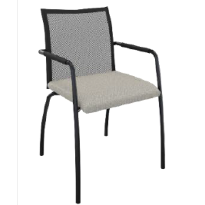 De innovatieve netbespanning zorgt niet alleen voor een moderne, transparante look, maar garandeert ook uitstekende luchtcirculatie, waardoor het zitcomfort de hele dag behouden blijft. Het sledeframe biedt stabiliteit en voegt een architectonisch element toe aan de ruimte. De zitting kan naar wens worden gestoffeerd in een van onze hoogwaardige stoffen (zoals Pearl of Xtreme), passend bij uw kleurenschema.