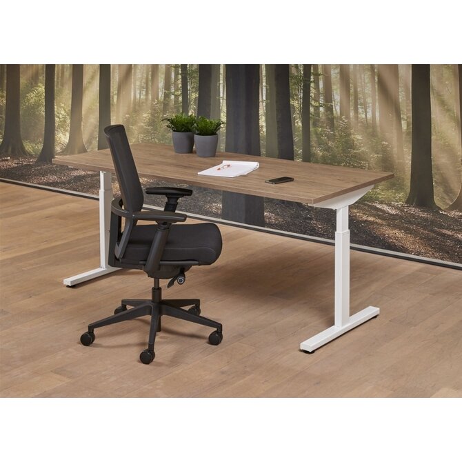 Verrijk je werkdag met Basic Bureau, een innovatief bureau dat stijl en ergonomie combineert voor een optimale werkervaring. Met een verstelbare hoogte en verscheidenheid aan afmetingen, creëer je een werkplek die naadloos aansluit bij jouw persoonlijke stijl en comfort. Kies de grootte die past bij jouw ruimte en stel het frame samen in een klassieke witte of moderne zwarte kleur. Het werkblad is verkrijgbaar in een fris wit of warm Robson eikenkleur voor een natuurlijke touch.