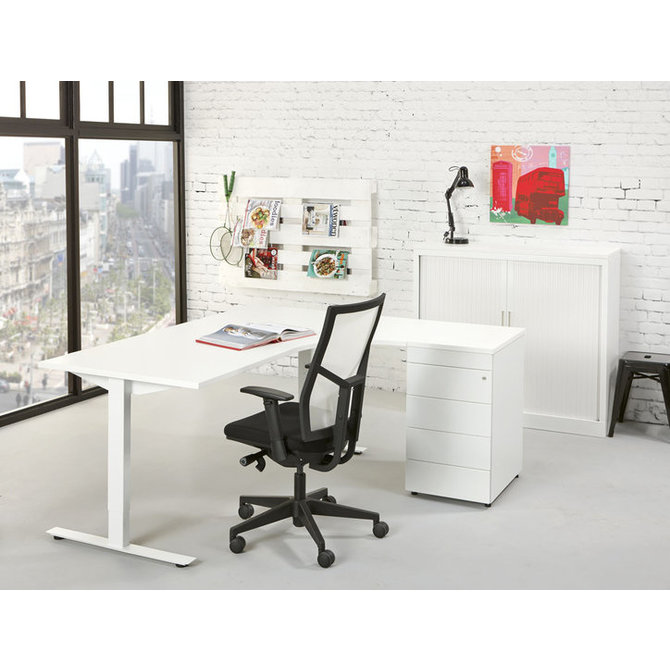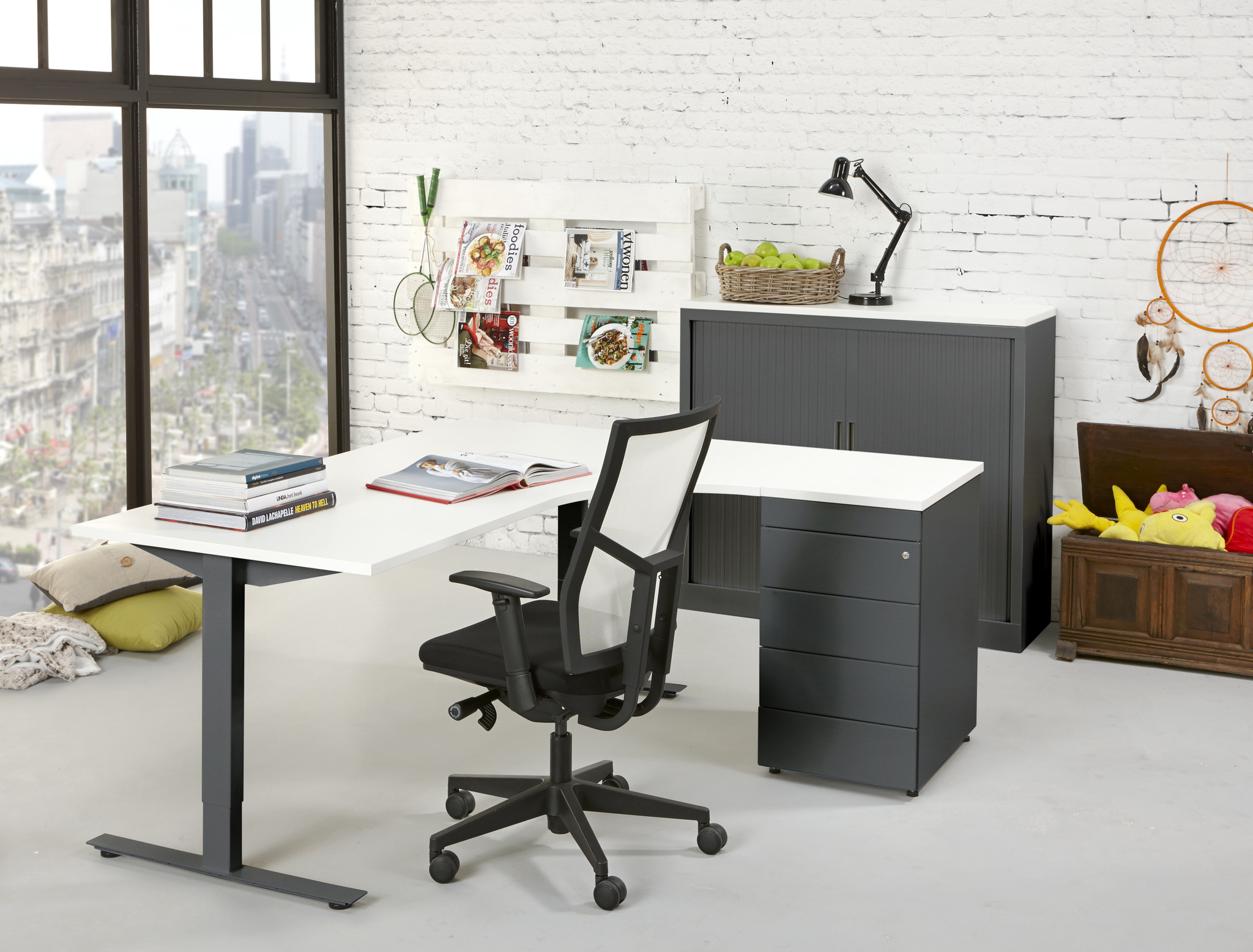 Ontdek het comfort van aanpassingsvermogen met de Essential Wingbureau. Dit ergonomische bureau past zich volledig aan jouw behoeften aan. Kies uit een lengte van 160cm of 180cm en ervaar de stevigheid van het 25mm melamine werkblad, beschermd met een PVC stootrand voor langdurig plezier. Door de hoogteverstelling van 65cm tot 85cm vind je altijd de juiste houding voor uren ongestoord werken.