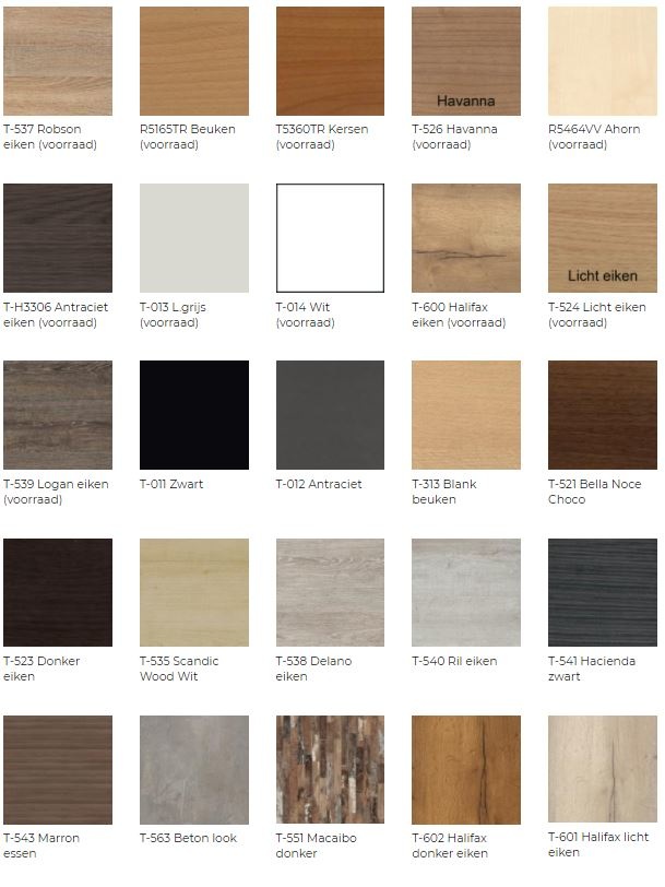 - Kleur blad: 10+ mogelijkheden, veelal uit voorraad leverbaar