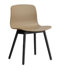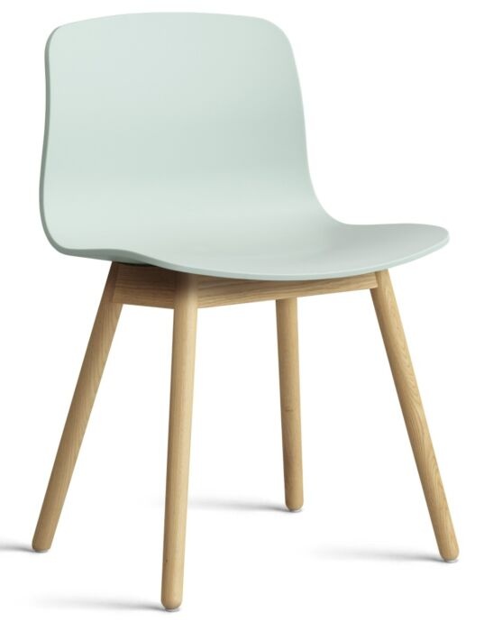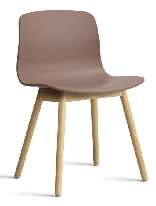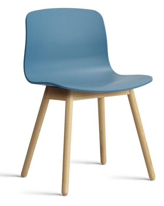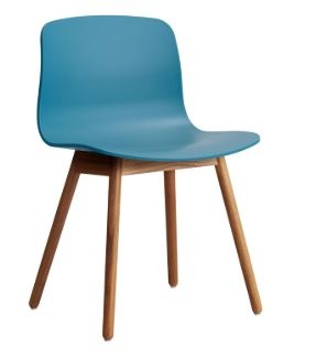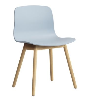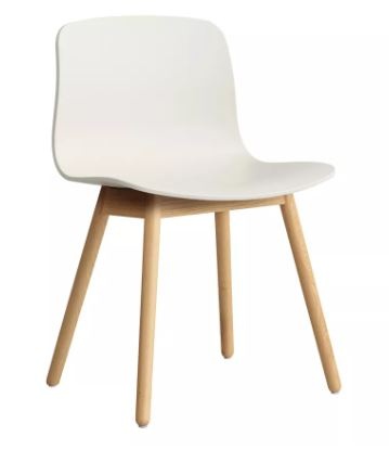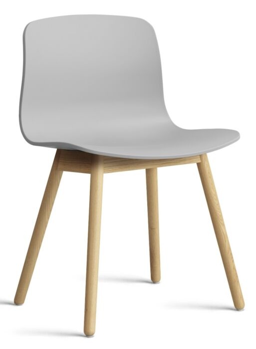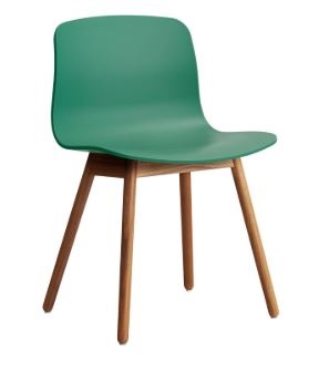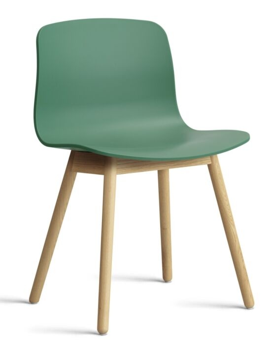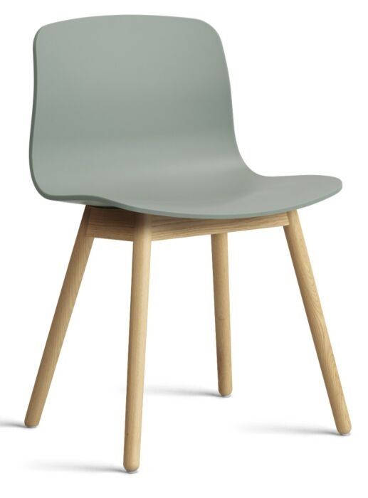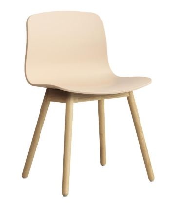 De About A Chair AAC 12 van HAY, ontworpen door Hee Welling, combineert de kenmerkende gestroomlijnde shell met een solide houten onderstel. De kuip is gemaakt van 100% post-consumer gerecycled polypropyleen, gebogen voor ergonomisch comfort en beschikbaar in diverse moderne kleuren.