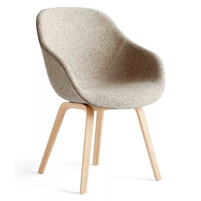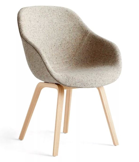 De About A Chair AAC 123 van HAY, ontworpen door Hee Welling, tilt de AAC‑serie naar een hoger niveau met een volledig gestoffeerde kuip inclusief subtiele armleuningen. De ergonomische shell, bekleed met comfortabele foam en hoogwaardige stof of leer, biedt een zachte en luxueuze zitervaring met een huiselijke uitstraling.