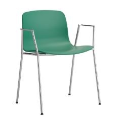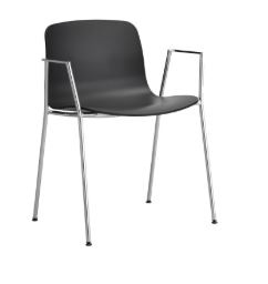 Het slanke 4‑poots frame is gemaakt van Ø16 mm staal met geïntegreerde armleuningen, verkrijgbaar in chroom, zwart of wit gepoedercoat. Dankzij de open, lichte vormgeving is de AAC 18 stapelbaar tot 10 zonder bekleding (5 met) en ideaal voor gebruik in conferentieruimtes, eetkamers, horeca of thuiskantoren.