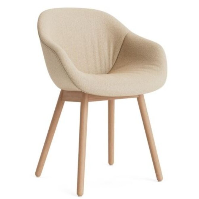 De About A Chair AAC 213 Soft van HAY, ontworpen door Hee Welling, tilt comfort naar een nieuw niveau met een royale, volledig gestoffeerde kuip. De hoge, licht gewelfde shell omhult de gebruiker subtiel en de geïntegreerde armleuningen versterken de uitnodigende wow-factor en ergonomische ondersteuning.