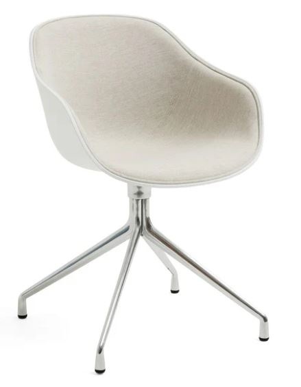 De About A Chair AAC 220 van HAY, ontworpen door Hee Welling in 2022, is een elegante en functionele draaistoel binnen de multifunctionele AAC‑familie. De gekrulde shell, gemaakt van 100 % gerecycled polypropyleen, is royaal en gebalanceerd met subtiele armleuningen, een iets hogere rug en een diepe comfortabele zit.