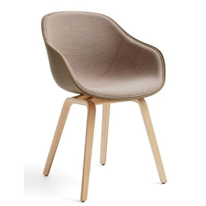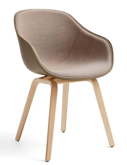 Het houten onderstel, uitgevoerd in natuurlijk eiken of walnoot, geeft warmte en een solide basis. Het vierpotenframe zorgt voor stabiliteit en een tijdloze uitstraling. Dankzij de duurzame materialen, ongecompliceerde vormen en uitnodigende uitstraling past de AAC 222 perfect in een breed scala aan omgevingen: van eetkamer en kantoor tot stijlvolle ontvangstplekken.