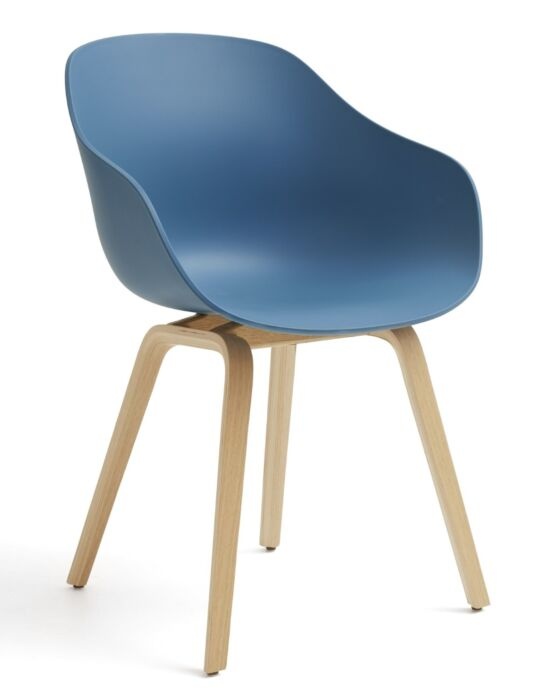 De About A Chair AAC 222 van HAY, ontworpen door Hee Welling in 2022, kent zijn kracht in eenvoud: een ergonomische shell van 100 % post-consumer gerecycled polypropyleen met een iets hogere rug en geïntegreerde armleuningen. De royale, diepe zit biedt ondersteuning en nodigt uit tot comfortabel en langdurig gebruik.