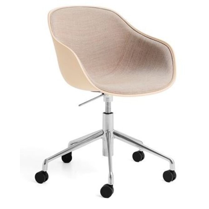 De About A Chair AAC 252 gestoffeerd van HAY, ontworpen door Hee Welling, combineert Scandinavische eenvoud met slim design. De kuip van gerecycled polypropyleen heeft een subtiele voorbekleding voor extra zitcomfort, terwijl het lichte silhouet zijn minimalistische karakter behoudt.