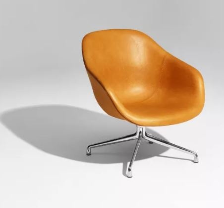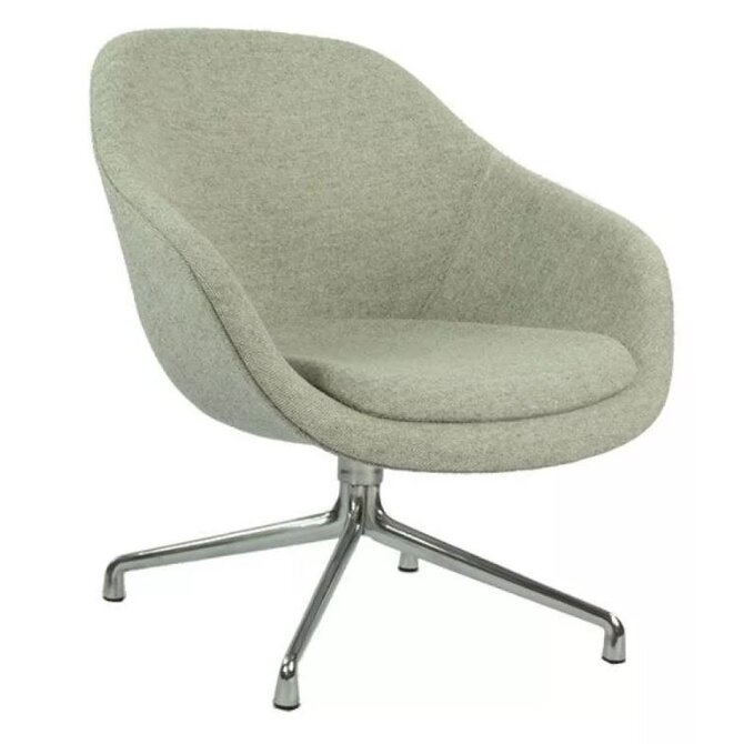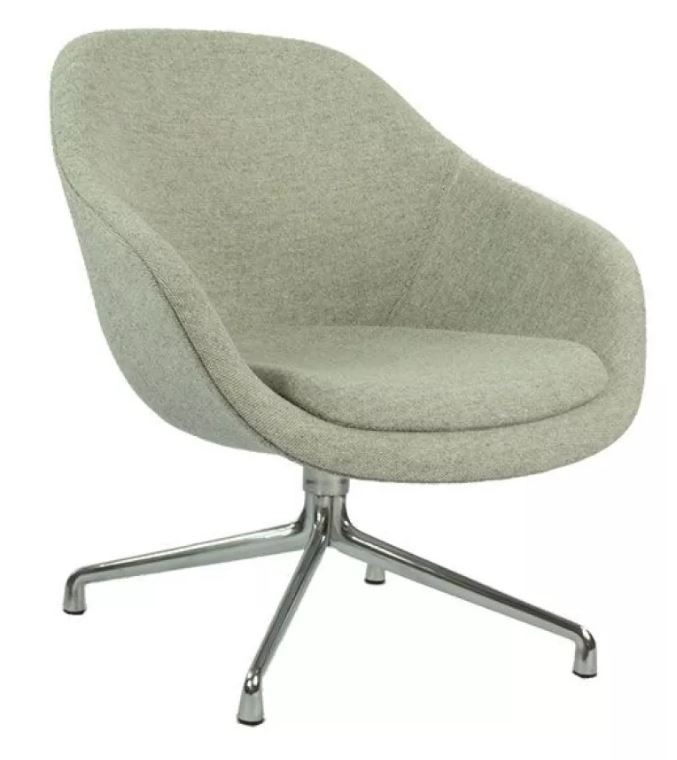 De About A Lounge AAL 81 van HAY, ontworpen door Hee Welling, is een compacte draaifauteuil die comfort en Scandinavische eenvoud naadloos combineert. De rondvormige, gewatteerde kuip, verkrijgbaar in vele stoffen en leersoorten, nodigt uit tot ontspannen zitten, met subtiele armgevelde contouren en optioneel hoog- of laag rugondersteuning.