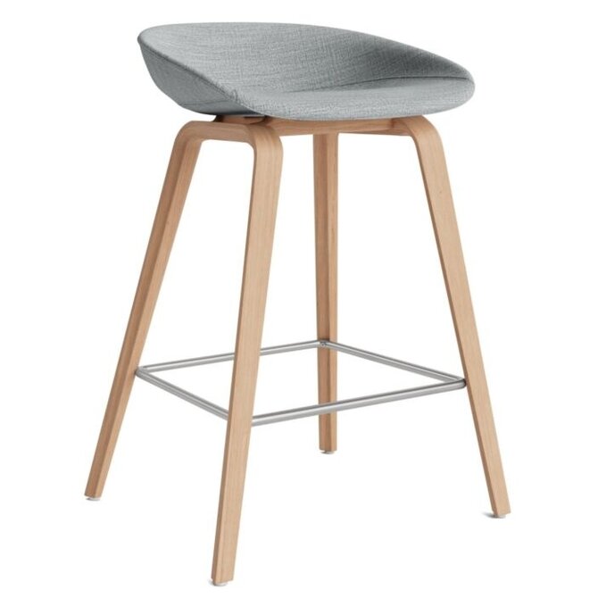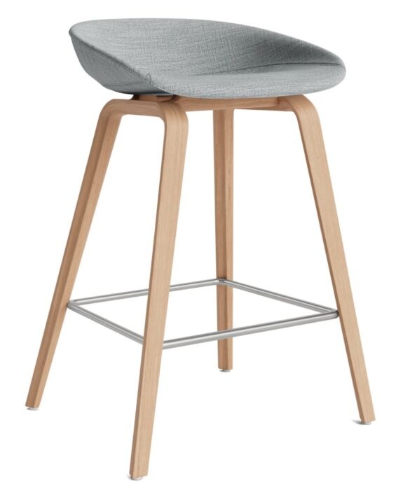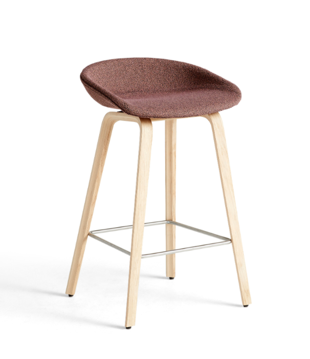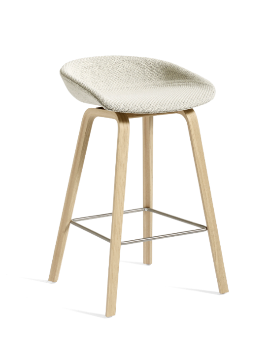 De About A Stool AAS 33 van HAY, ontworpen door Hee Welling, is een verfijnde barstoel waarin functionaliteit en elegantie samenkomen. De kuip is rijkelijk bekleed met foam en hoogwaardige stof of leer, wat een comfortabele zitervaring biedt. De achterzijde behoudt een strak silhouet, waardoor de stoel licht en toegankelijk oogt.