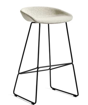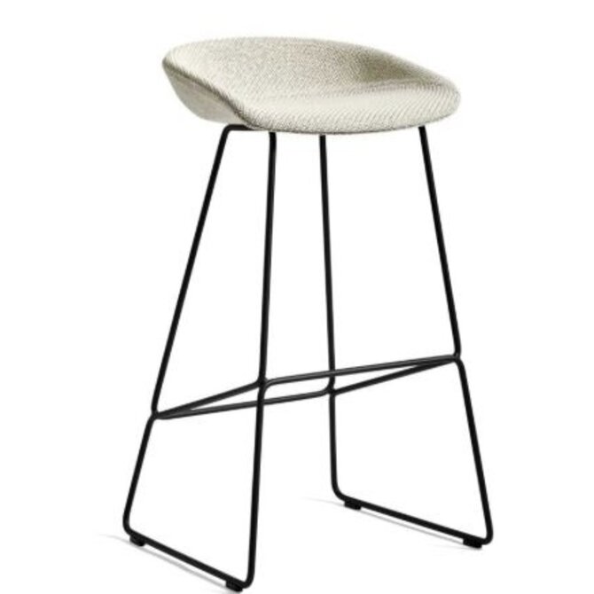 De About A Stool AAS 39 van HAY, ontworpen door Hee Welling, is een elegante barkruk met een volledig gestoffeerde kuip. De zachte foamvulling en hoogwaardige stoffering zorgen voor een comfortabele zit, terwijl de open vormgeving en strakke lijnen het ontwerp licht en toegankelijk houden.