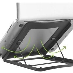 Het open frame zorgt voor een betere ventilatie van je laptop, terwijl de antislip rubberen pads de device stevig op z’n plaats houden, zelfs bij lichte tikbewegingen. Bovendien is hij compact op te vouwen, waardoor je de houder makkelijk meeneemt of opbergt.