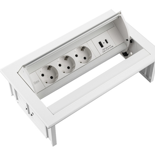 Deze Power Desk In is een strak vormgegeven inbouwmodule voor stroomvoorziening in werkbladen en vergadertafels. Met een stevige push‑to‑open klep en een vaste kabel van 1 meter met eGST‑male stekker, is de module eenvoudig te integreren in uiteenlopende meubeltoepassingen.