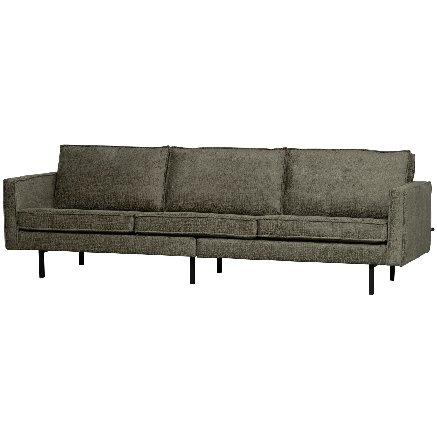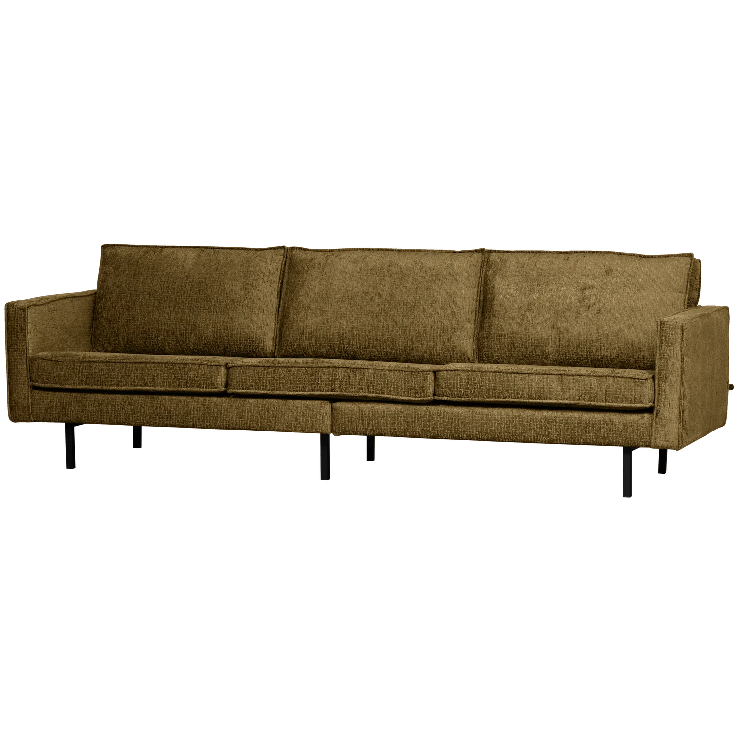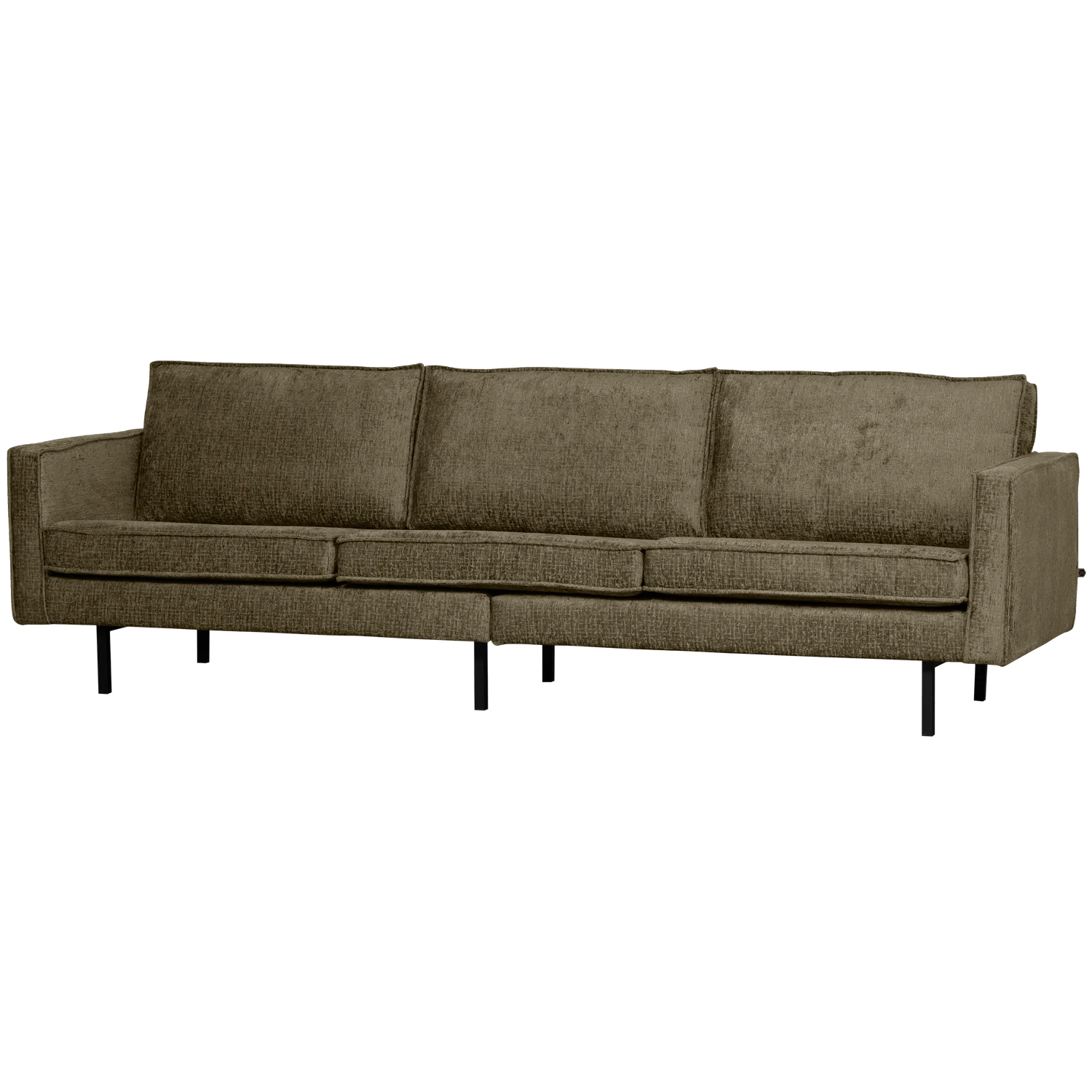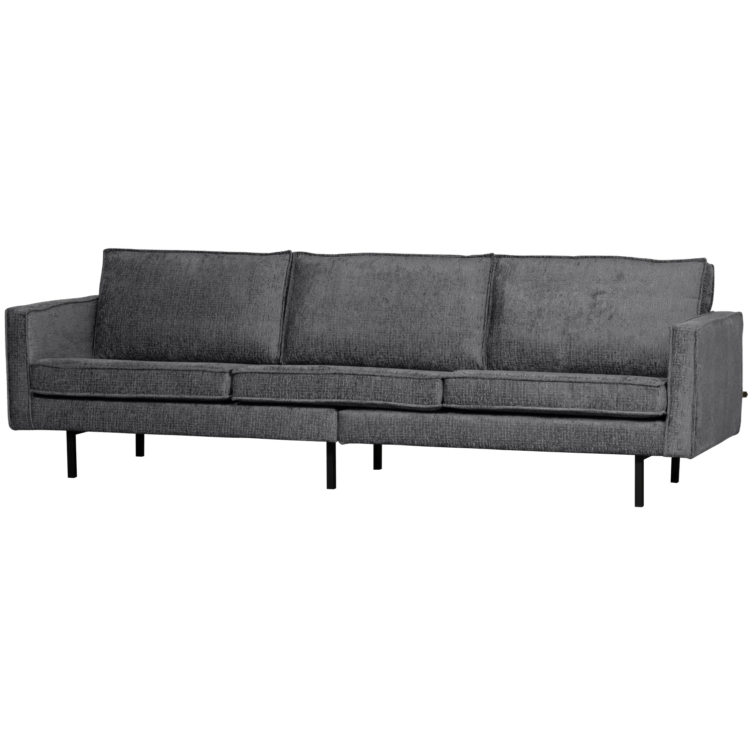 De bekleding is uitgevoerd in een hoogwaardige structure velvet stof (100% polyester), een grof fluweel met een subtiele structuur. Met afmetingen van H 85 x B 277 x D 86 cm biedt deze bank comfortabel plaats aan drie tot vier personen.