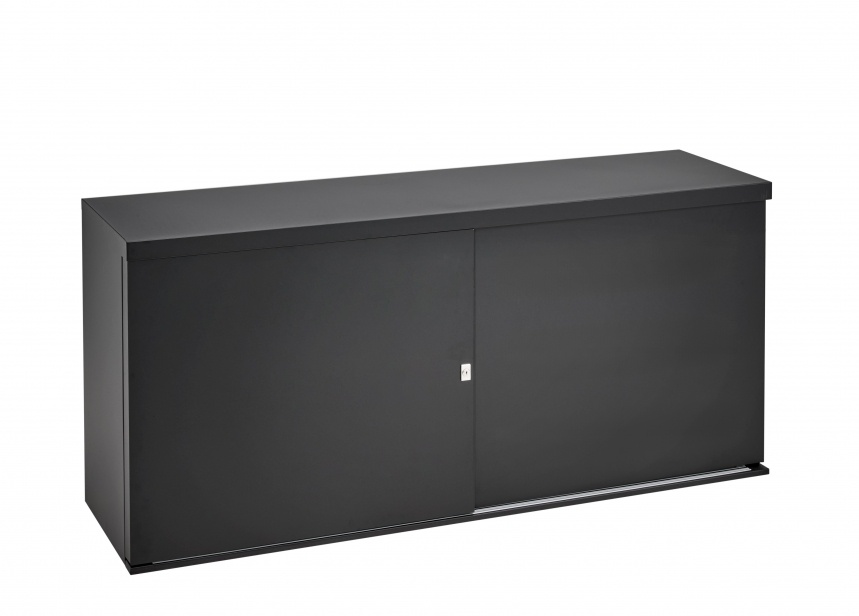 - Metalen schuifdeurkast in 3 kleuren Zwart (Ral 9005), Wit (Ral 9010) en in Licht grijs (Ral 7035)