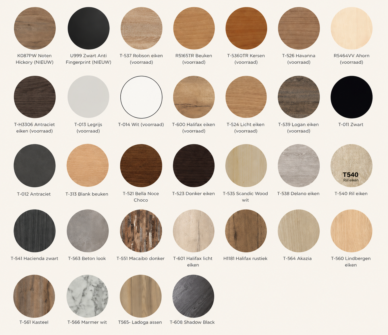 Bij een hoogte van 73.5 cm biedt deze tafel een comfortabele werkplek en met een 25mm dikke MDF kern ben je verzekerd van een duurzaam oppervlak. Het werkblad is rondom afgewerkt met een sterke 2mm dikke PVC stootrand, waardoor slijtage nauwelijks kans krijgt. Voor wie waarde hecht aan een strak en vlekvrij uiterlijk, is de optie voor een extreem mat zwart werkblad de perfecte keuze. Laat je niet storen door reflecties of vingerafdrukken en focus volledig op de inhoud van je vergadering.
