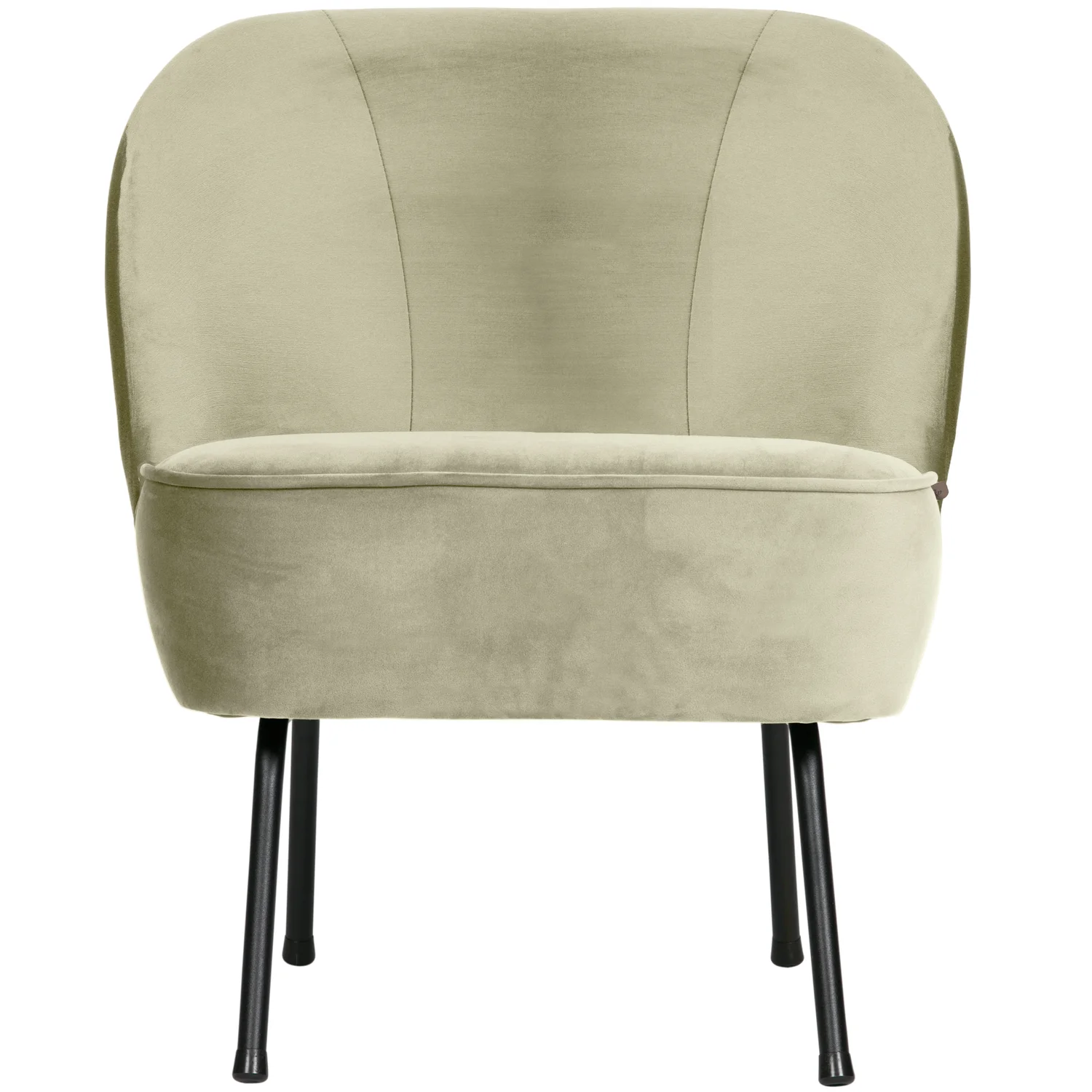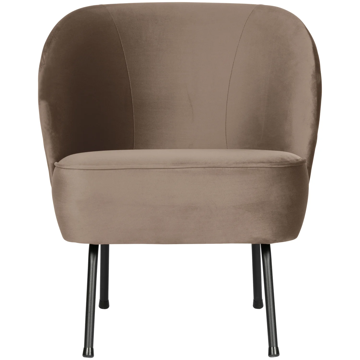 De bekleding is uitgevoerd in een lichtglanzende velvet stof (fluweel, 100% polyester). Met afmetingen van H 69 x B 57 x D 70 cm biedt deze stoel de luxe van een loungestoel, maar met de compactheid van een fauteuil. Een echte blikvanger.