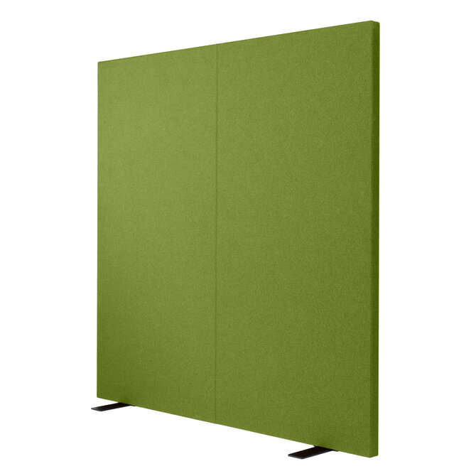 De Vrijstaande akoestische wand 120 cm hoog Professional is een hoogwaardige oplossing voor open kantoren, wachtruimtes of overlegplekken. Het 5 cm dikke paneel is opgebouwd uit recyclebare textielvezels (2×2 cm), brandklasse B/S1/D0 en een harde kern, wat zorgt voor effectieve geluidsreductie (aw = 0,4 / NRC = 0,50).