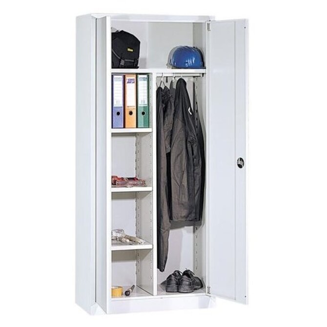 Ontdek hoe jij je uitrusting en kleding georganiseerd en veilig houdt met onze werkplaatskast. Deze stevige constructie, vervaardigd uit hoogwaardig metaal, biedt dé oplossing voor iedereen die werkt in een veeleisende omgeving zoals bouwunits of scholen. Je krijgt de veelzijdigheid van een kast die niet alleen je werkkleding en accessoires netjes houdt, maar ook stevig genoeg is om de dagelijkse drukte te weerstaan.