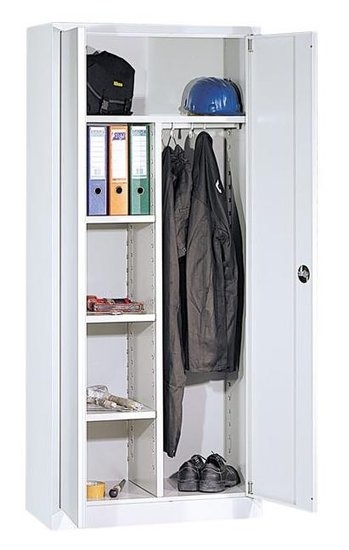 Je zult genieten van het gemak dat deze kast biedt met aan de ene zijde een legbord voor platte opslag van helmen of gereedschap, terwijl de andere kant uitgerust is met jas haken voor je werkkleding. De linkerzijde van de kast is een droom voor organisatie met 3 verstelbare legborden die zich aanpast aan jouw specifieke opslagbehoeften. Bovendien kun je met de draaisluiting en het bijbehorende slot met 2 sleutels er zeker van zijn dat jouw persoonlijke items altijd veilig zijn.
